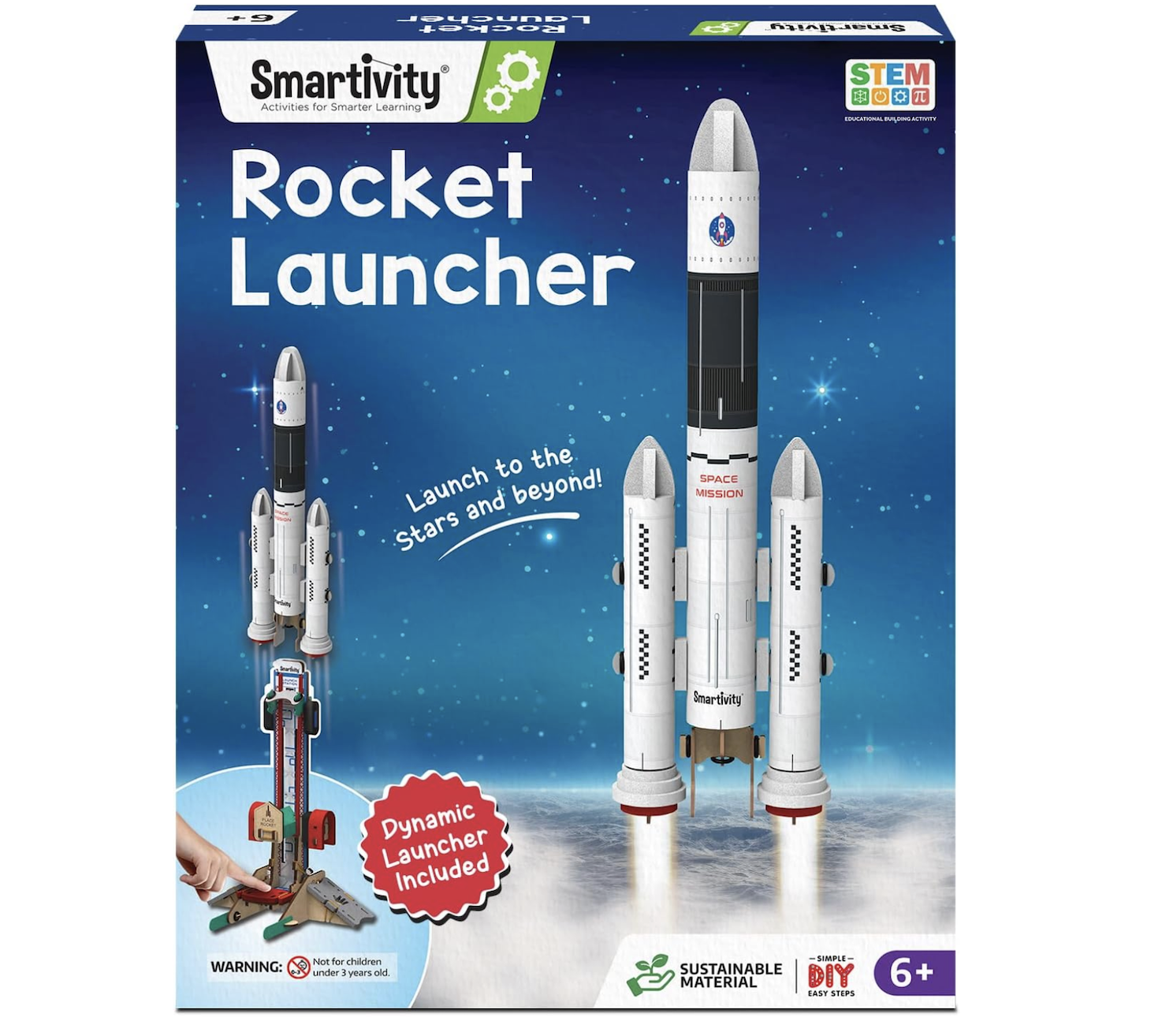 Have you ever wondered how rockets travel to space? With this kit, you will build your own realistic rocket, load it onto the durable launcher, and press the launch button to watch it soar into the air. Our step-by-step instructional manual ensures a deeply engaging DIY experience, perfect for kids to construct and enjoy for hours. Designed for boys and girls aged 6-14 years. Ages 6+.