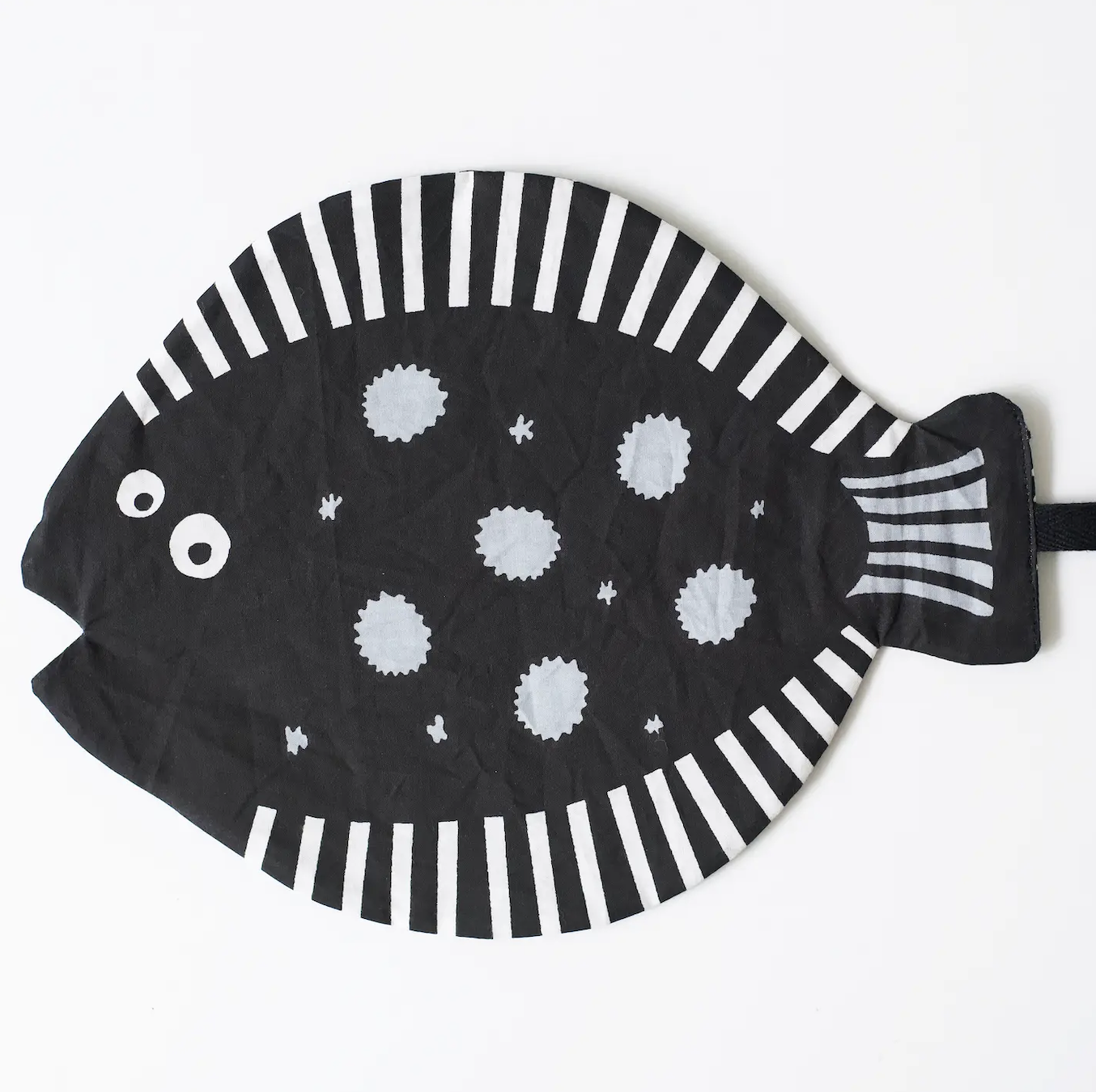 Grab...squish...crinkle! Our new organic cotton Fish Crinkle Toy is so very stimulating with a satisfying crunch. Adorable, high-contrast design makes it cute and lovable. Your baby will love grabbing and holding this stimulating toy for their curious explorations. Made of 100% Organic Cotton Shell. Crinkle Paper filling. Care Instructions: Hand wash and lay flat to dry. 6 mos.+