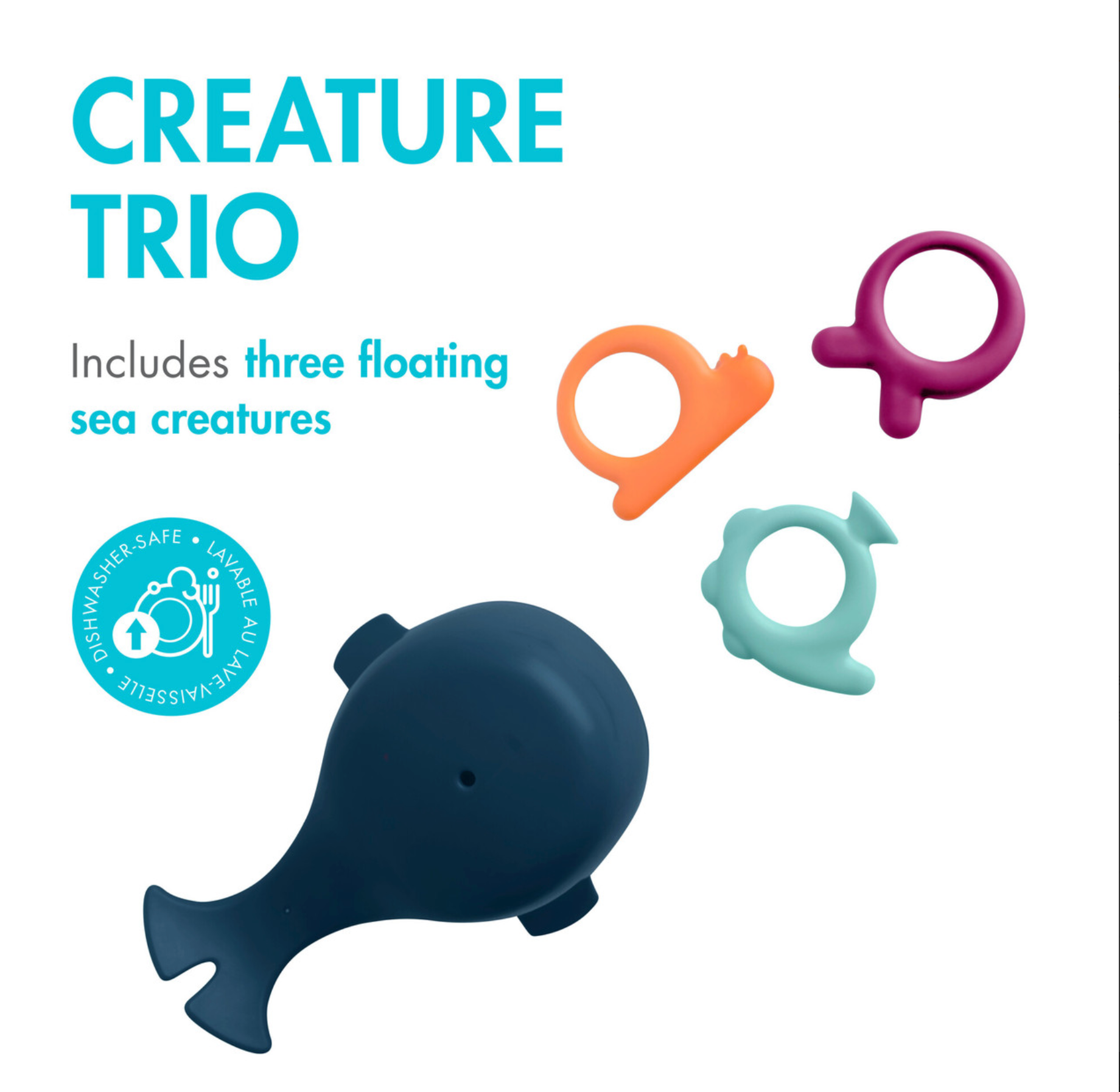 PLEASE FEED THE ANIMALS. He’s the biggest creature in the sea so naturally he’s worked up an appetite. Squeeze Chomp’s tail fin and his soft, flexible jaw opens wide enough to gobble up the included sea creatures as they float around the tub. Not only is he cute, he encourages hand-eye coordination—so you’ll love him as much as your little one does. No pinching- soft flexible jaw is safe for small fingers. BPA and PVC free. Top rack dishwasher safe. Ages 1 & up.