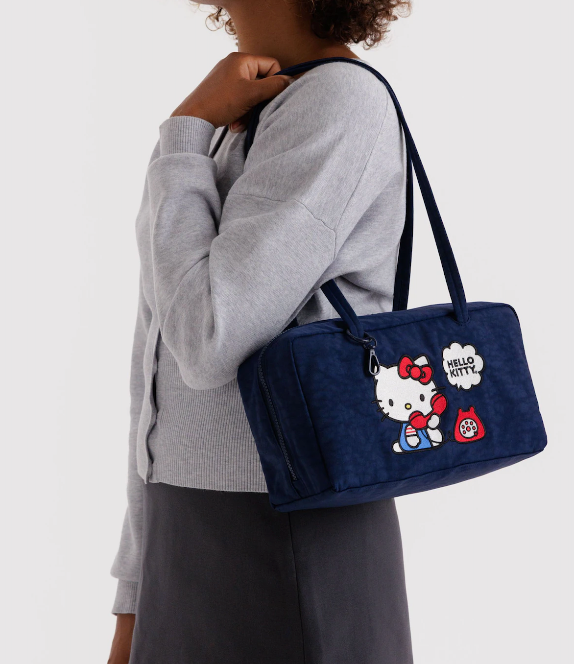 A bowler bag designed to be accessorized. Four charm loops and a clip ring let you accessorize from every angle. A wide interior includes a convenient zip pocket and room to carry more than the essentials. Recycled heavyweight nylon, recycled ripstop lining. Two 14" drop shoulder straps with four charm loops. Interior logo key leash, metal spring clip ring & clip. Machine wash cold