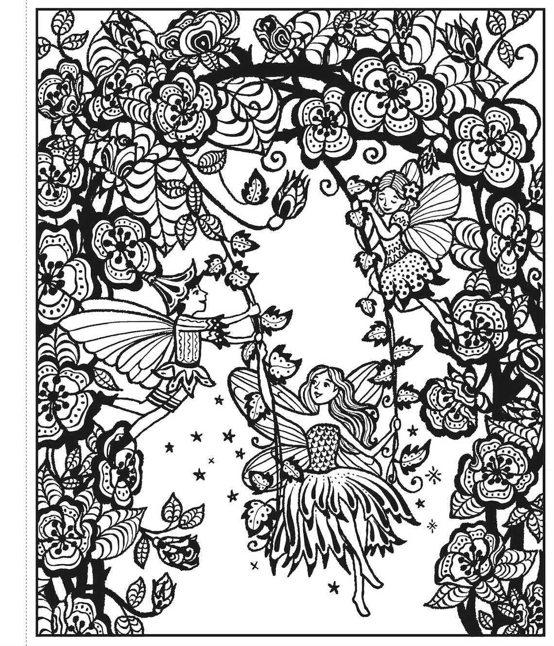 Brush the pages of this book with water and see the fairies and flowers in the enchanted garden burst into beautiful color! There are 16 scenes to paint with intricate, black and white illustrations of a fairy garden covered in snow, a lake of lily pads, a fairy fruit patch and lots more. With a fold-out back cover to prevent colors running onto the page beneath.