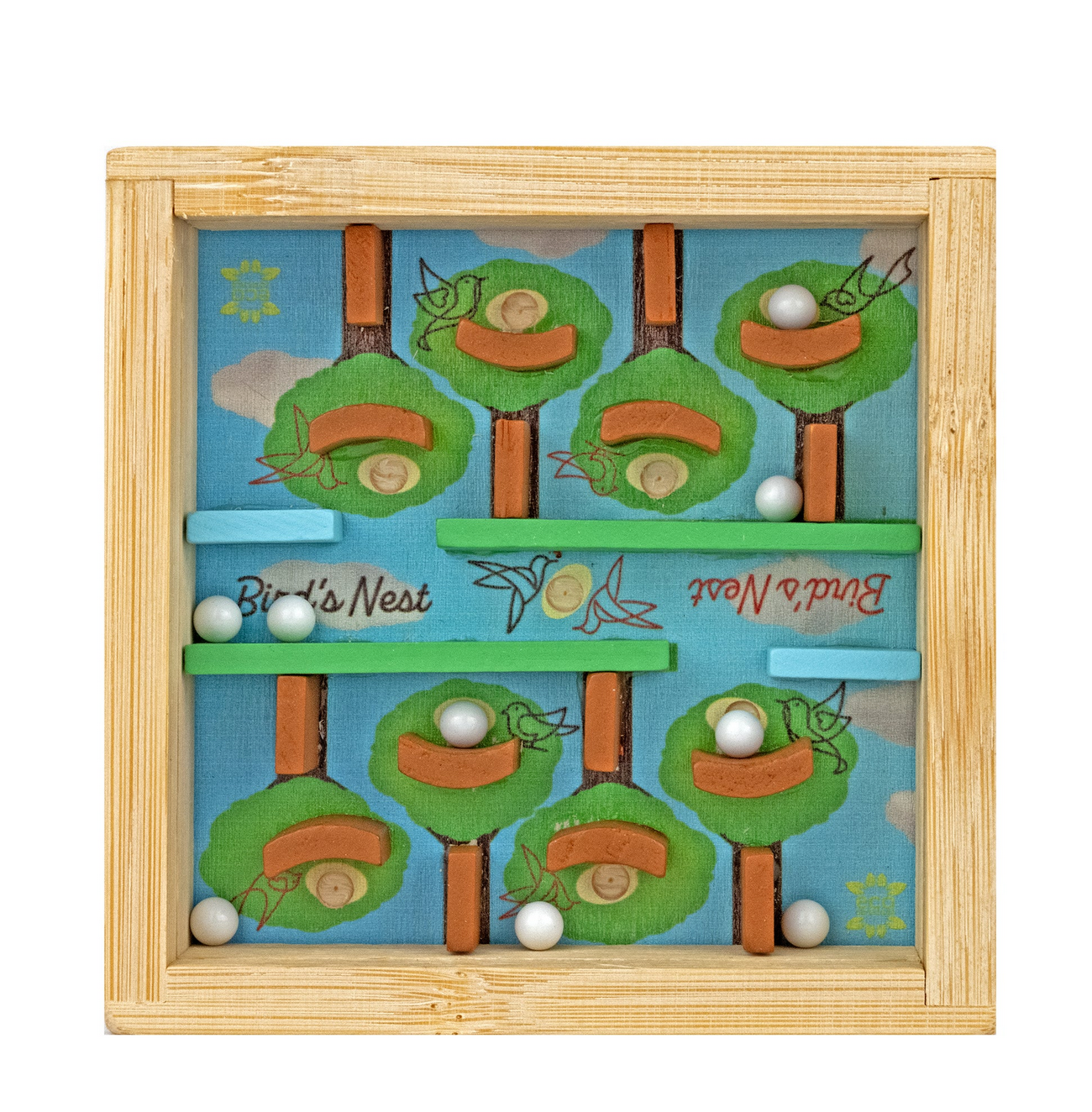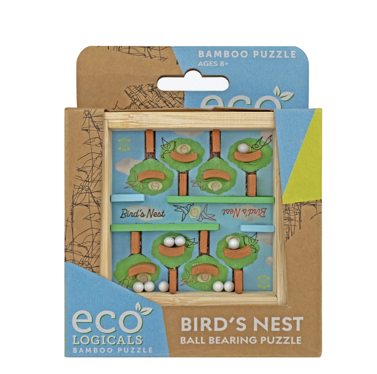 This eco-friendly puzzle is as fun as it is skill-building. Tilt and turn the bamboo frame to roll each shiny "egg" into its nest, testing hand–eye coordination, focus, and patience along the way. Made from sustainable bamboo and smooth metal bearings, this tactile puzzle combines natural design with satisfying play, perfect for kids who love a hands-on challenge. Ages 6+