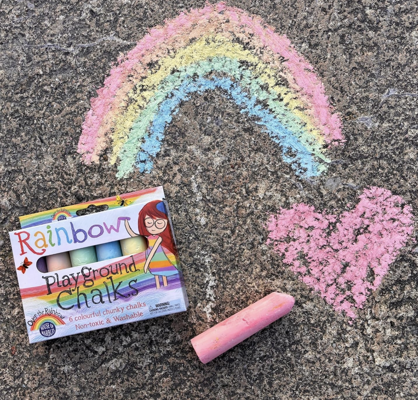 Unleash your creative side with these wonderfully colorful, chunky chalks. Decorate your doorstep or brighten up a brick wall. Bedeck a pavement or sidewalk with dragons, unicorns, hearts and flowers. Pefect for hopscotch! 6 colorful chalks. Non-toxic and washable. Ages 3+