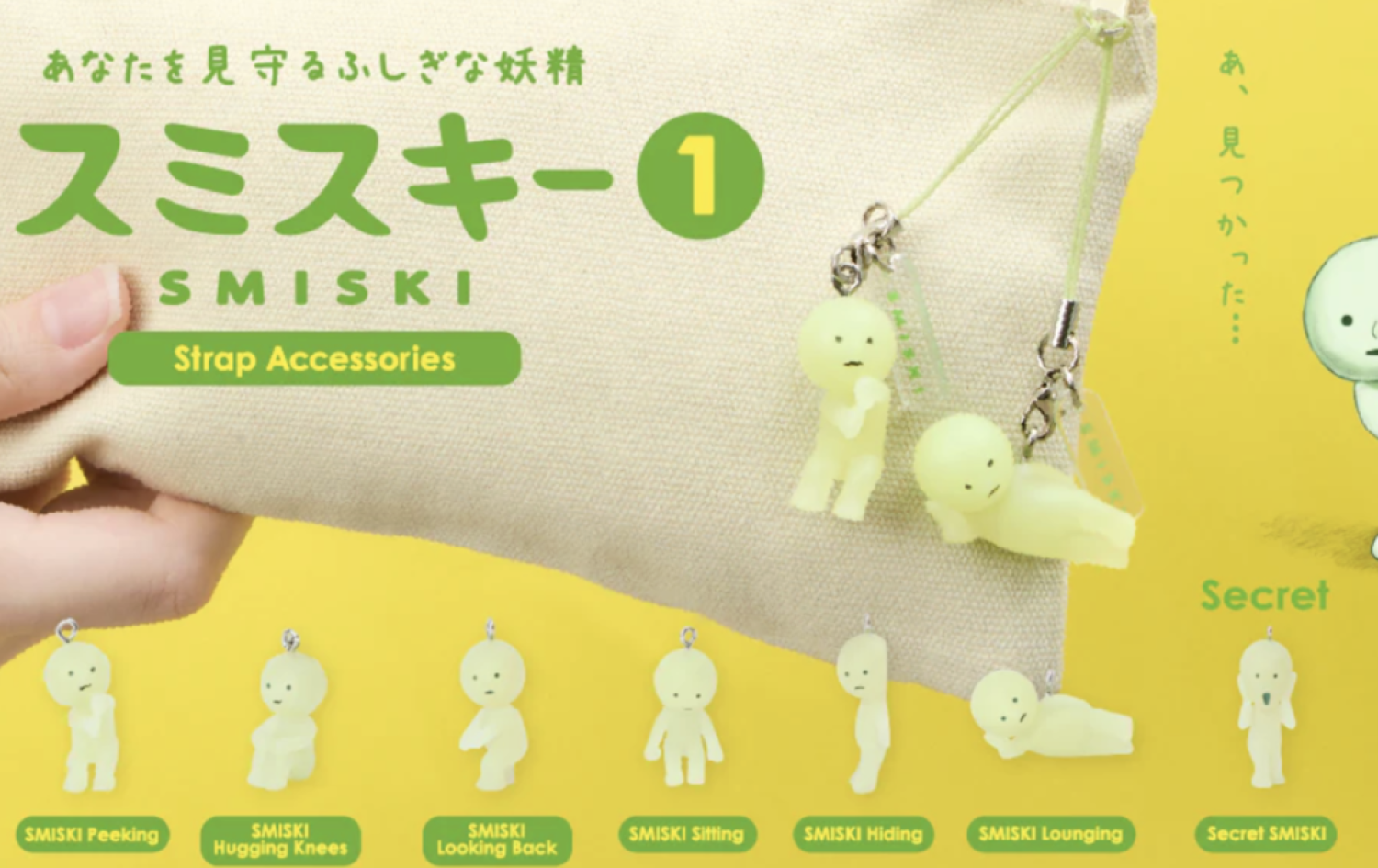 ** LIMIT 2 PER STYLE** To celebrate the 10th anniversary of their discovery, SMISKI, the tiny creature who lives in corners, is coming soon as a miniature glow-in-the-dark charm accessory! Each charm is based off the unique personalities expressed in SMISKI: Series 1 and comes in a special gachapon capsule that looks and glows just like SMISKI! 6 kinds + Secret. Sold blind-boxed in plastic, glow-in-the-dark gachapon capsules.