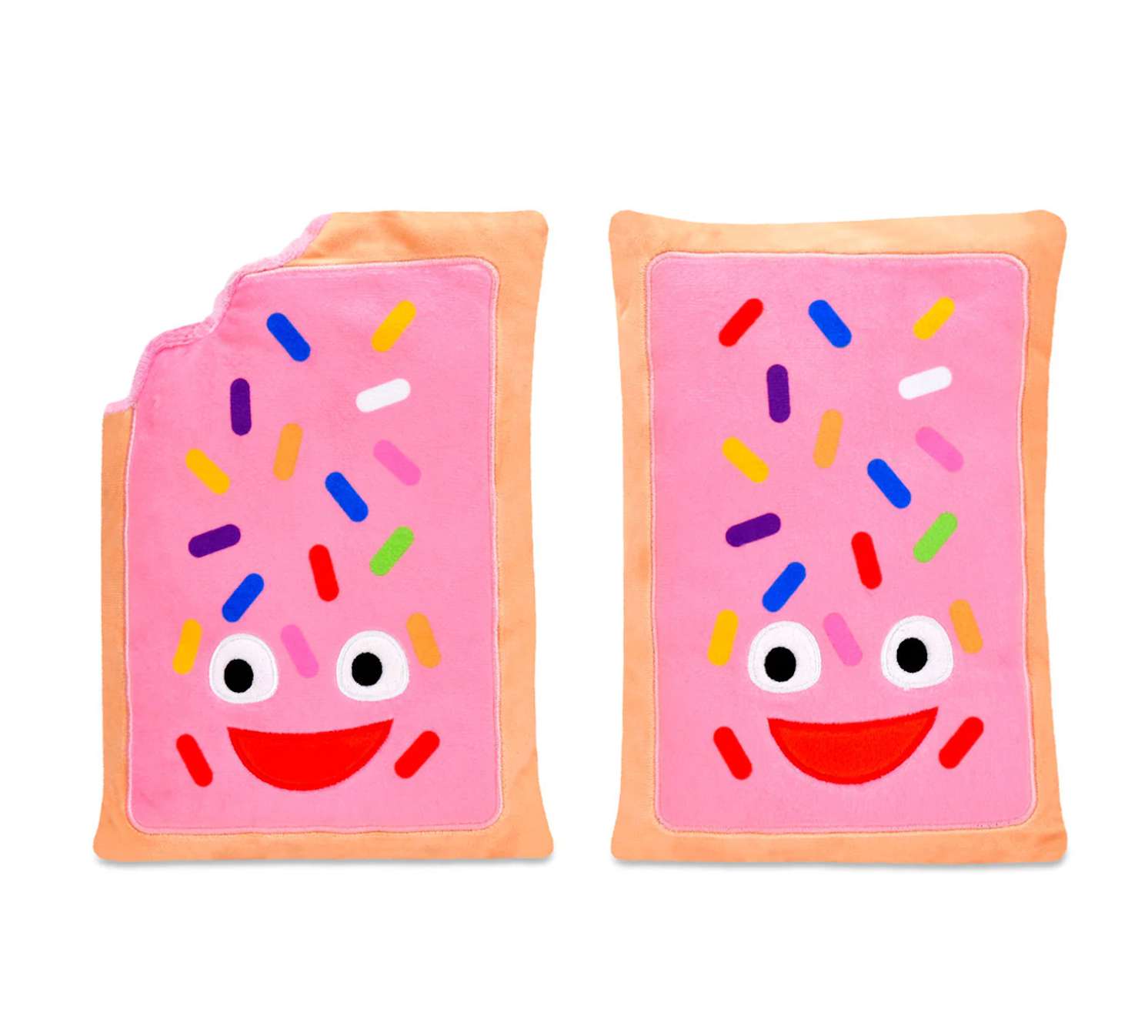 There's always room for one more silly, bright, cool, crazy throw pillow - especially when it's as fun as this big 'box' of Pop-Tarts plushies! This full-color, officially licensed pillow is comprised of a fleece zipper closure bag with a clear window in the front to show the pink frosted tart pillows inside! Package includes a holographic "wrapper" for the tarts, too - just like the real thing! And it isn't just fun to look at - these softies are all filled with 100% polyester fiberfill, so they are never lumpy or bumpy! Ages 3+
