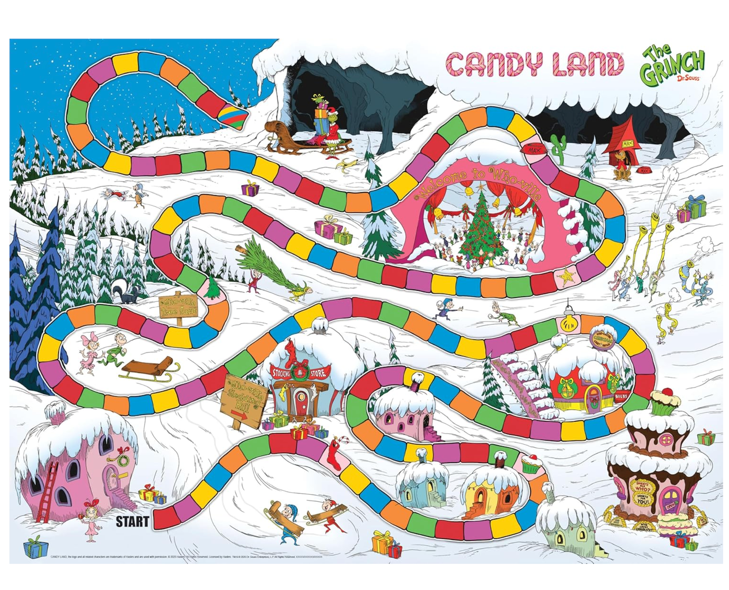 Race through Who-ville! Journey past Cindy-Lou Who’s home, Max’s Doghouse & twinkly Holiday Light Path to reach Mt. Crumpit in this festive Grinch-themed Candy Land game! Play as Who-ville characters, follow a festive path, and relive the charm of How the Grinch Stole Christmas in a new way! 2-4 players. Ages 5+.