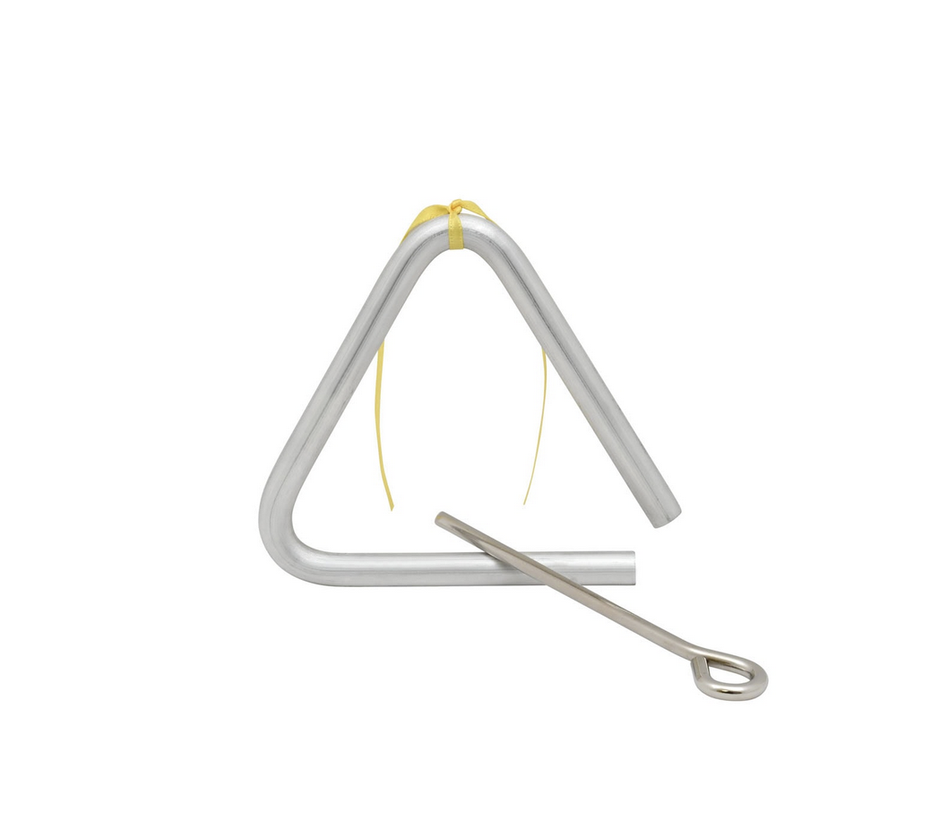 Pure Aluminum triangles produce a distinct metallic tone with clear projection. Made in the USA. Includes holder and striker.