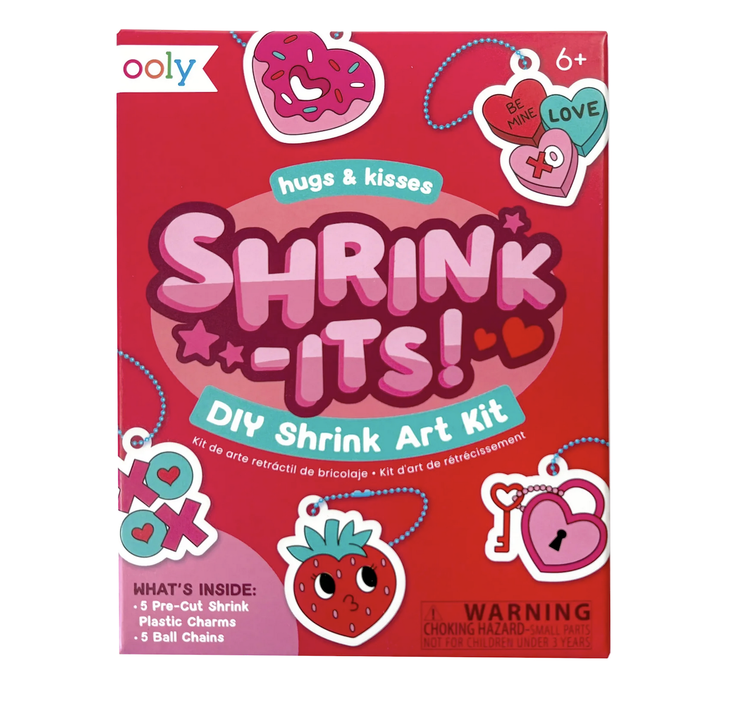 The Mini Shrink-Its! DIY Shrink Art Kit Hugs & Kisses packs major charm into a pocket-sized project. Kids can color in 5 Valentine-themed shrink designs like Xs and Os, strawberries, and classic hearts—then watch them magically shrink down in the oven into giftable, wearable Valentine’s charms. Each finished piece turns into a charm you can attach to backpacks, zipper pulls, or keyrings using the 5 included ball chains. No glue, no mess, just color, cut, and bake—making this a quick and easy win for class swaps, friendship bracelets, or tiny keepsakes with extra personality. Ages 6+
