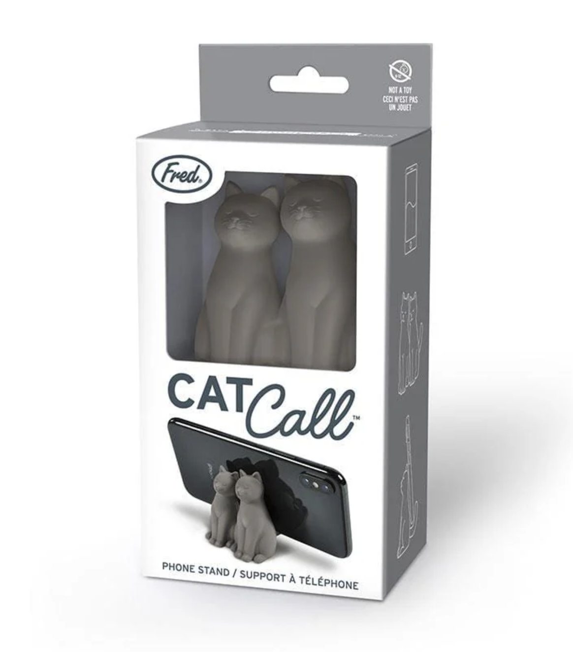 Can you hear me meow? Prop up your phone in a way that is paws-itively precious. Fred's CAT CALL is the charming cat phone stand that is purrfect for watching videos, reading, video chatting, and more! Constructed from durable, lightweight silicone.
