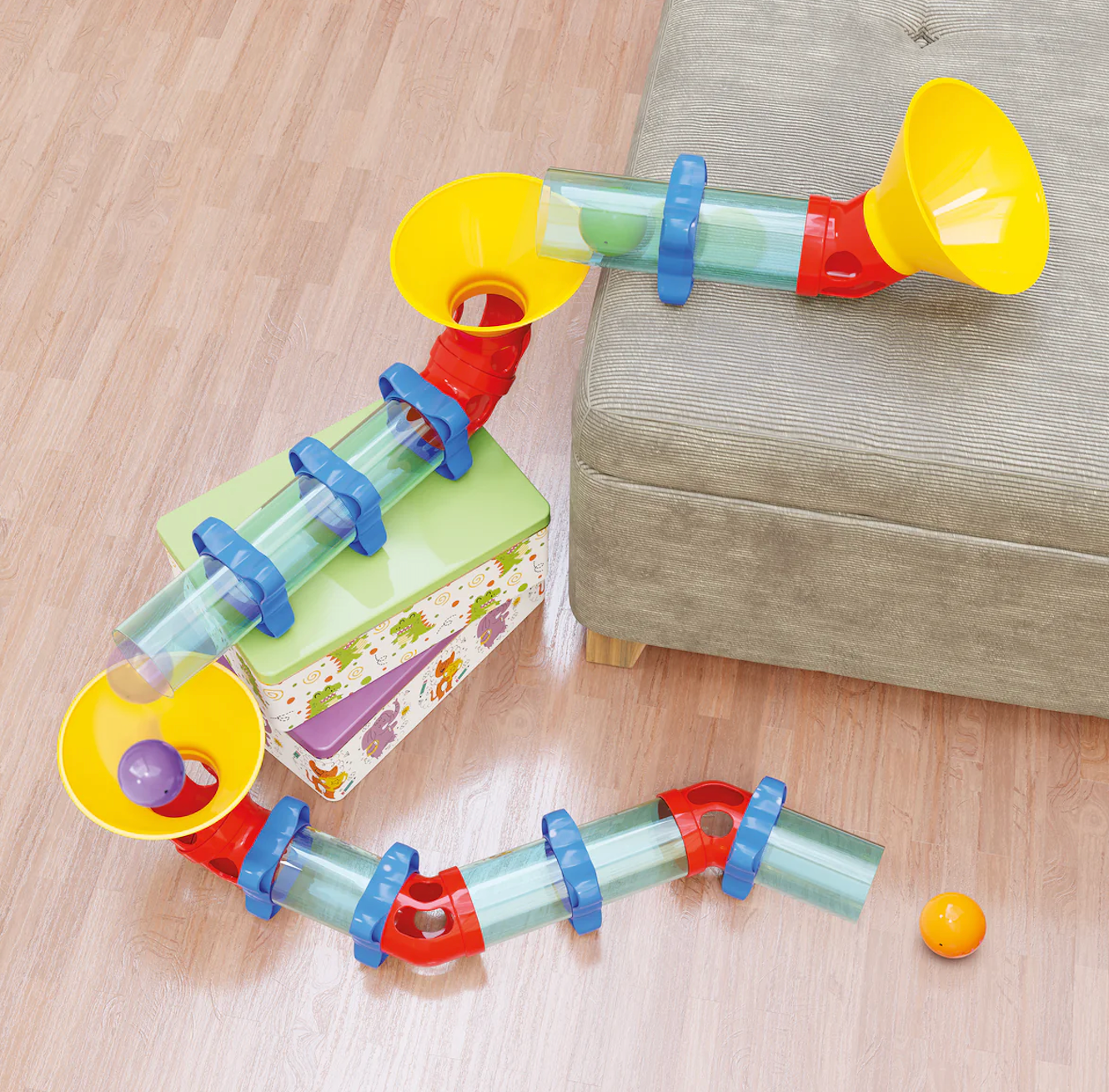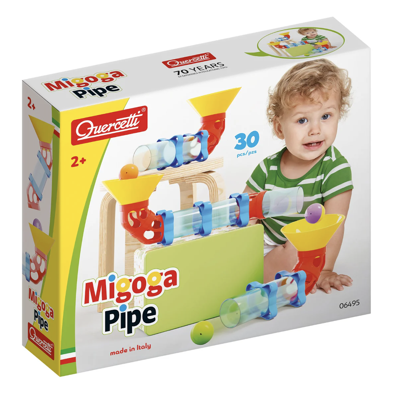 With Migoga Pipe, both young and old play together! It’s a track without support bases that allows maximum freedom in building always different paths, where marbles take center stage with spectacular leaps and breathtaking jumps. Ages 2+.