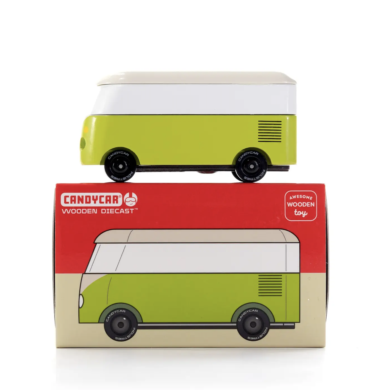 Groovy, dude! A pocket-sized, uniquely cute toy, made of wood and pure nostalgia. Our patented Wooden Diecast™ construction is all solid beech, painted with water-based paints, and is fully endorsed by our partners at VW®. This one's limey and leafy, with good times in tow. Catch you later, alligator! Ages 3+.
