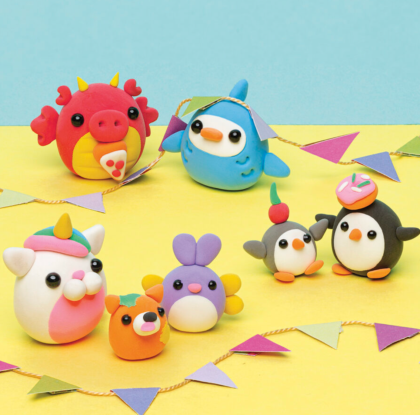Make the cutest clay animals with just a few simple steps. No sculpting experience required! First, learn how to make simple shapes with 10 colors of clay, like balls, triangles, and snakes. Then put them together to create your new animal friend. Customize your creation with cute hats and other fun accessories. This kit includes everything you need to make up to 15 adorable animals, including a boba bear, unicorn kitty, strawberry milk cow, and avocado axolotl, a.k.a. Avolotl.