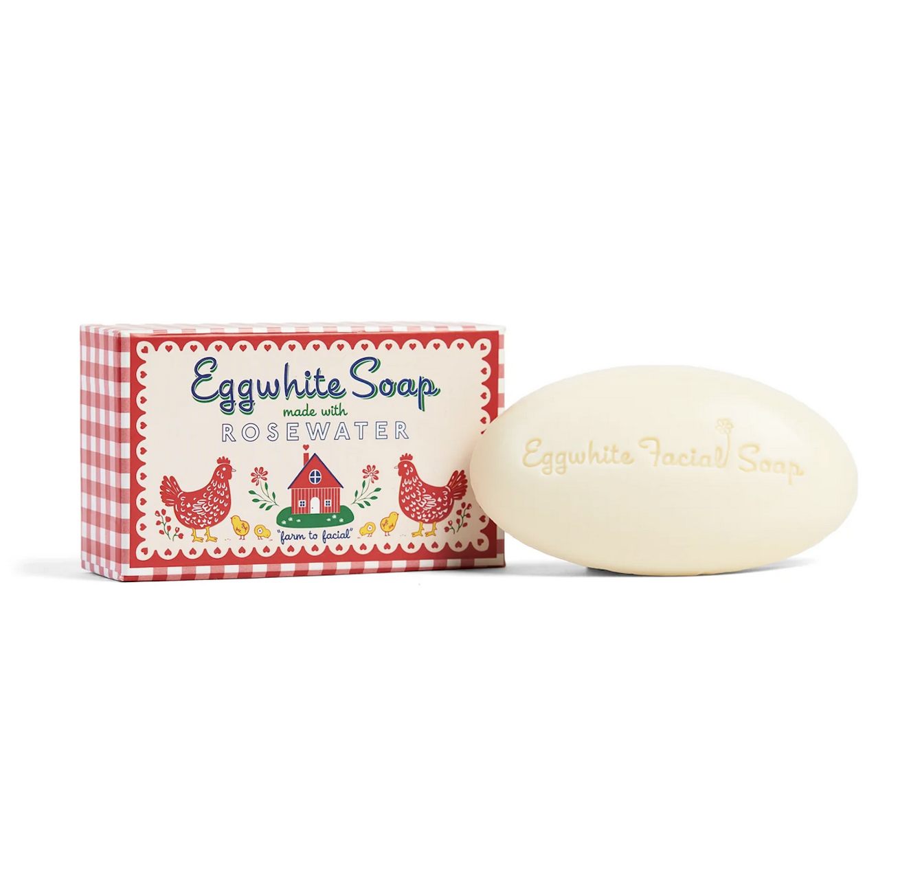 Say goodbye to dirt, makeup, and dull skin with the Eggwhite and Rosewater Facial Soap a mini spa treatment right at your sink! This magical facial gently tones, soothes, tightens pores, and leaves your skin feeling softer than ever before. Add some warm water to your Eggwhite bar to create a lovely, rich lather. Smooth over your face and neck. Let it work its magic for five minutes. Then, gently rinse off and pat dry. Enjoy the radiant glow!