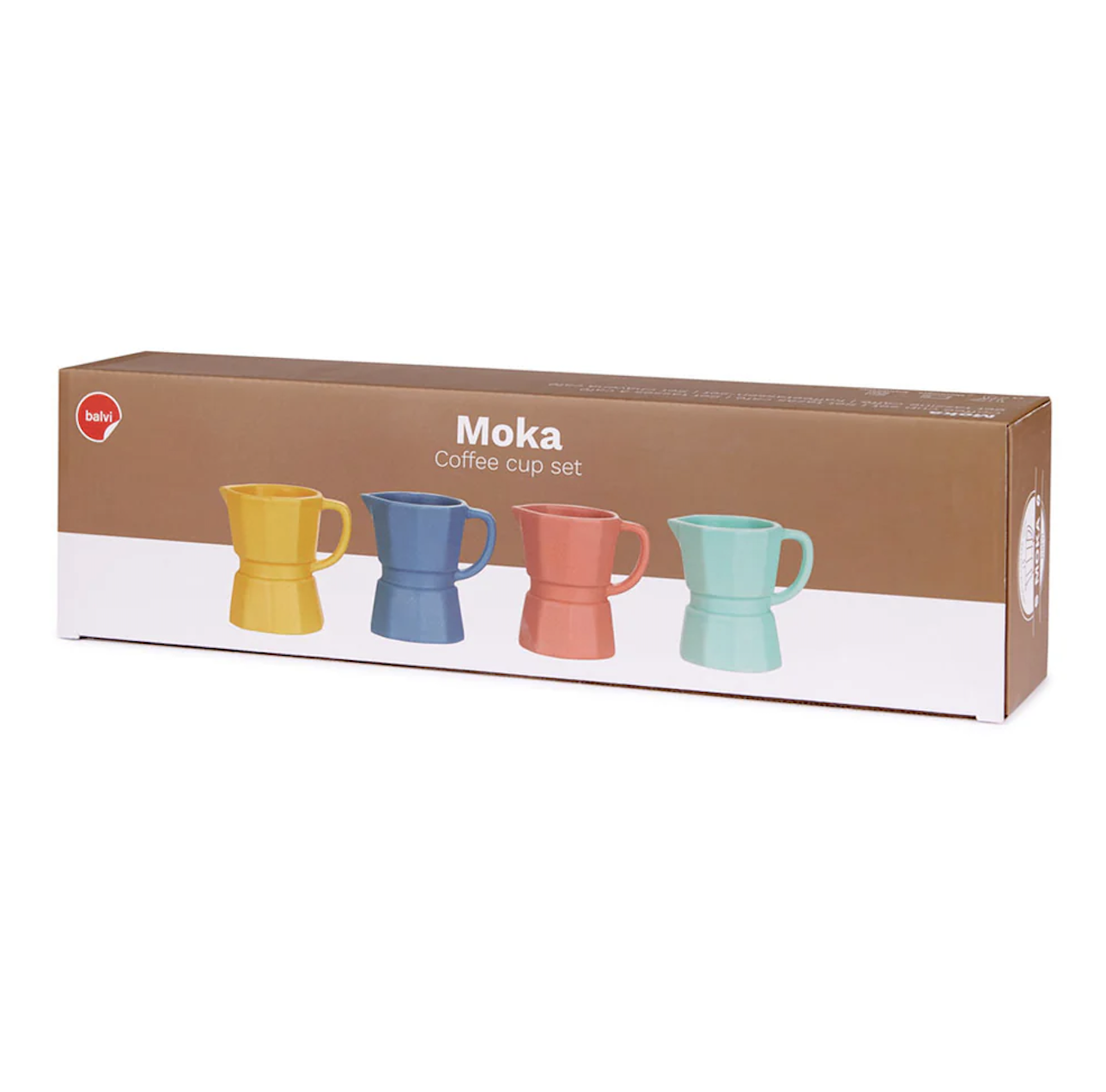 This set of four coffee cups is not just a collection; it's a tribute to the iconic Moka pot and its rich, aromatic brew, offering you a delightful coffee experience in four unique colors. Hand-painted and made of high quality ceramic. Microwave and dishwasher safe.