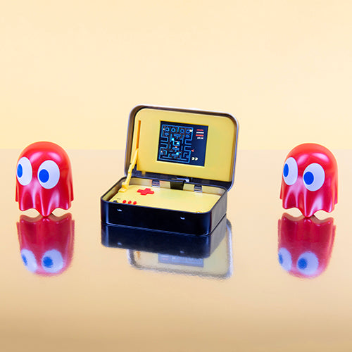 Play PAC-MAN on the go like never before. This pocket-sized tin contains the classic arcade game in all its 8-bit glory. An amazing gift for fans and collectors alike and all housed in its very own pocket-sized tin! The 4 directional controls give you full ability to charge about the game giving you the best chance at avoiding Ghosts! 4”"Screen with