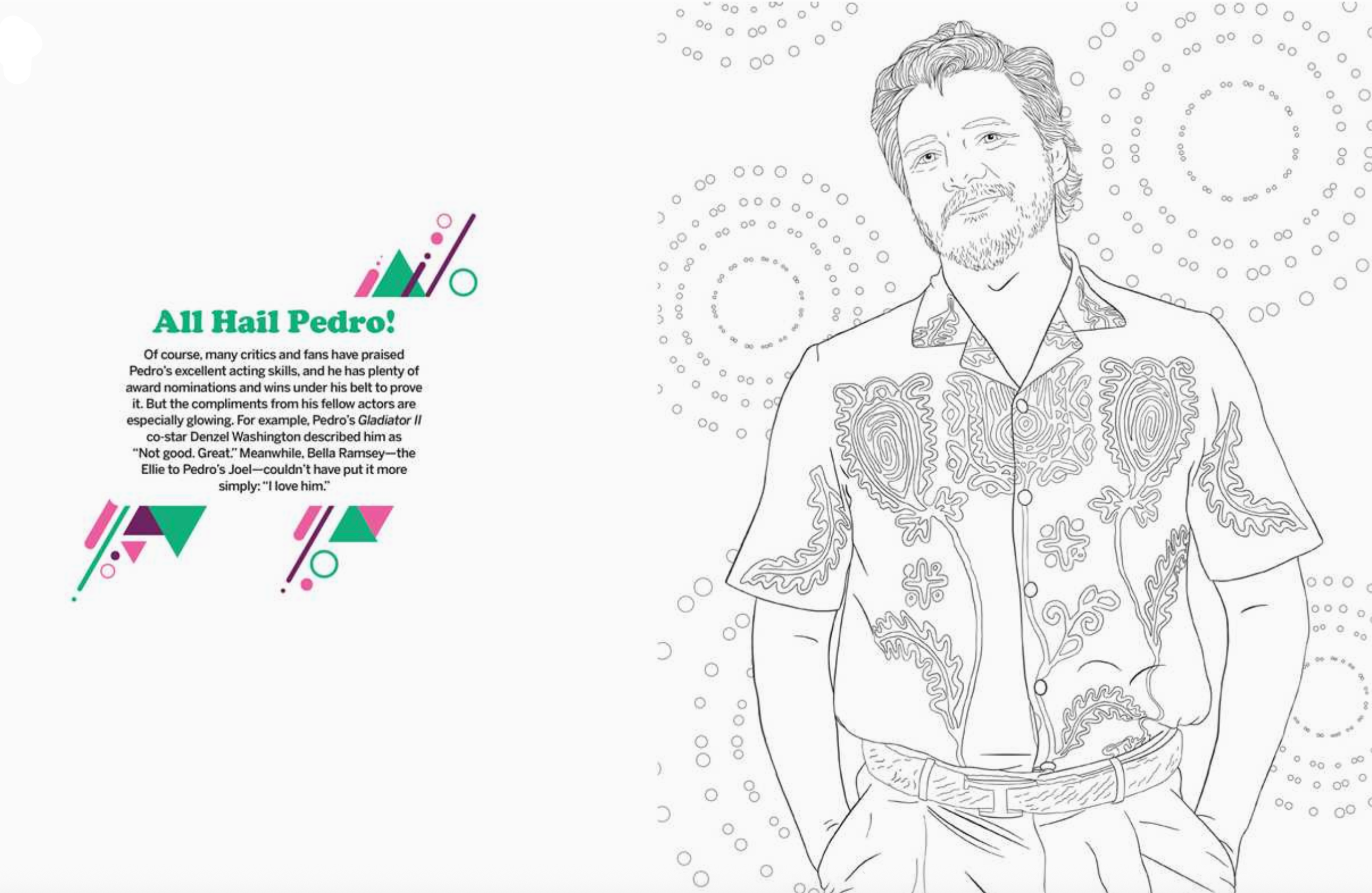Dive into the life and career of one of Hollywood’s most popular actors in this fun coloring and activity book that includes tons of interesting facts about Pedro Pascal!